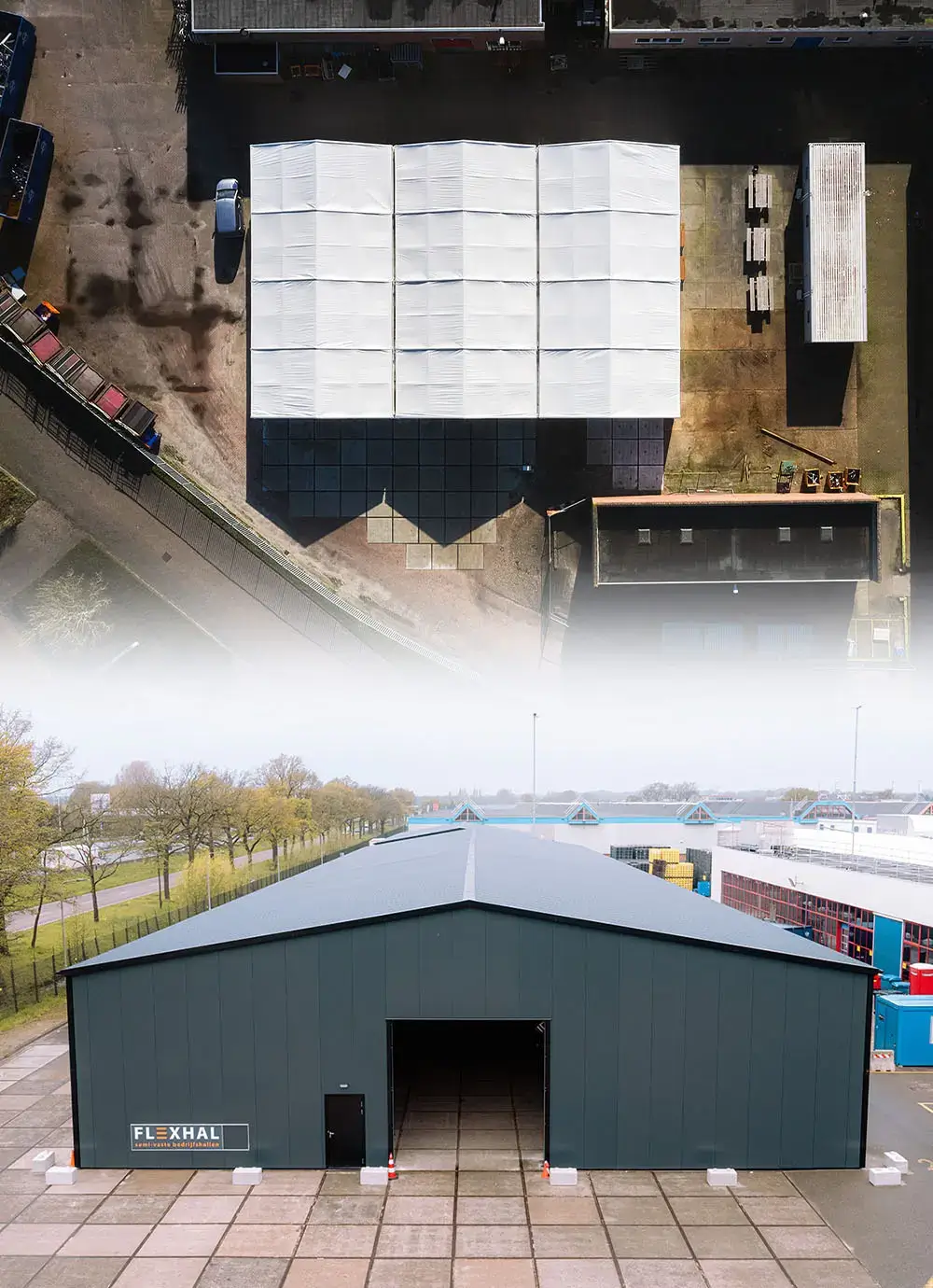 Das Aussehen einer permanenten Halle und die Flexibilität einer Zelthalle.