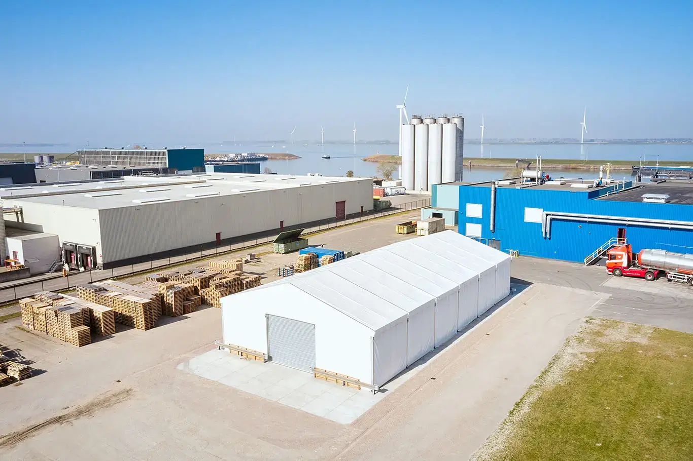 Da jedes Unternehmen unterschiedliche Anforderungen hat, ist keine Produktionshalle genau gleich. Als Anbieter temporärer Hallen sind wir sehr flexibel in der Lieferung unserer Zelte. Unsere Zelthallen können komplett maßgeschneidert werden und bieten zahlreiche zusätzliche Optionen. Denken Sie an Isolierung, Heizung und Beleuchtung. Aber auch Stoßschutz, verschiedene Türtypen und Bodensysteme sorgen dafür, dass Ihr Zelt genau Ihren Wünschen entspricht.